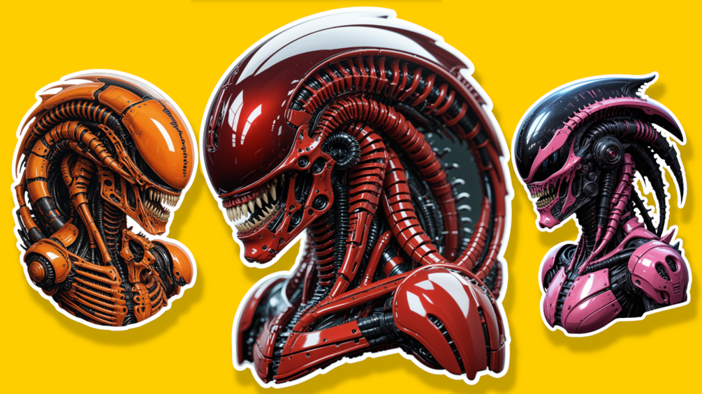 3 Xenomorph Style Stickers (300DPI, High-Res 1500px+ Transparent PNG files)